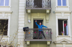 Während der Corona-Pandemie und infolge geschlossener Turnhallen machte ich meinen Balkon zur Bühne meiner Fitnesskurse. Bald wurden die spontanen Samstag-Trainings für viele Anwohnerinnen und Passanten zum Ritual. Mehrere Dutzend Personen trainierten jeweils auf Balkonen, an offenen Fenstern und auf dem Trottoir zu mitreissender Musik. Das Balkon-Fitness war geboren.